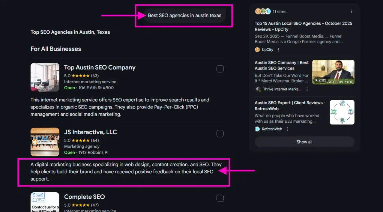 If your descriptions are vague or copied from your website, Google is less likely to feature your business. But if they’re clear and specific, they give both searchers and AI the information they need.