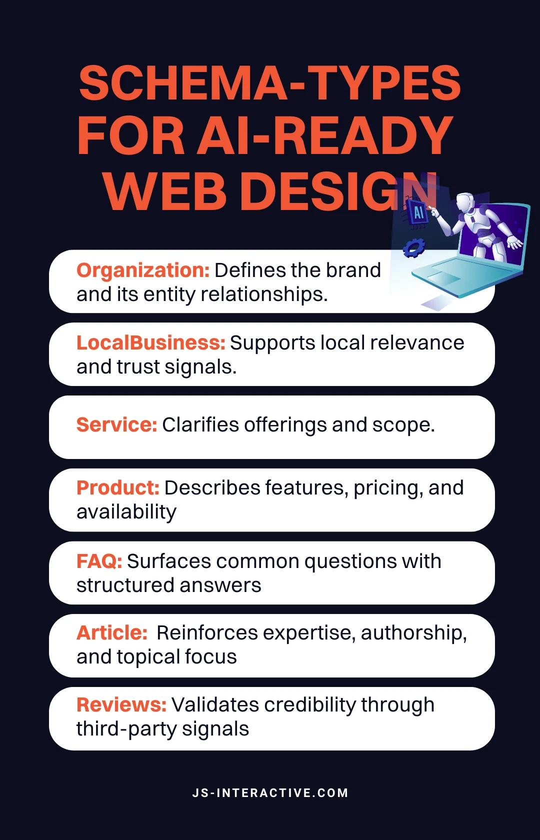 Schema should be part of the build, not an afterthought. When implemented correctly, it reduces ambiguity for both search engines and AI interfaces.